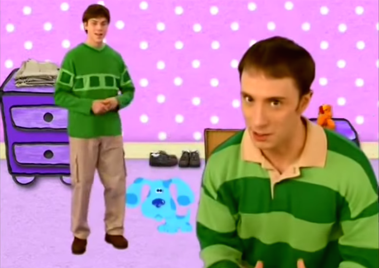 Posted a video of steve burns — green striped shirt and all — to twitter steve blue's clues. So about that time steve went off to college.